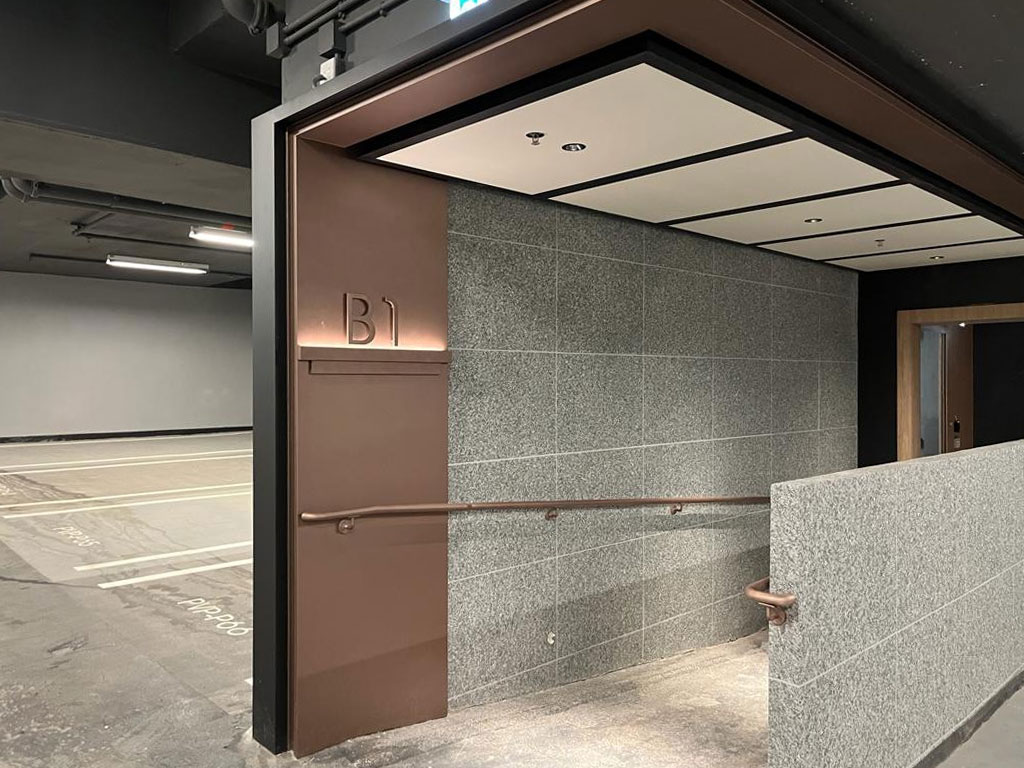 Carpark Entrance The photos were taken on 23 March, 2022 in 888 Lai Chi Kok Road before the completion of the development. The colour, layout, materials, fittings, finishes, decorating features and other items shown in this part of the photo may not be provided in the development upon completion. The landlord reserves the right to alter, amend and change the design, layout, materials, fittings, finishes and appliances of any part of the development.